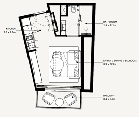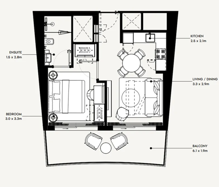 Комплекс представляет собой многоуровневое здание с развитой внутренней инфраструктурой: четыре подземных уровня, цокольные этажи, подиумная часть, 11 жилых этажей и эксплуатируемая кровля. В проекте представлены студии, апартаменты с одной и двумя спальнями, выполненные в современном стиле с акцентом на функциональность и комфорт. Интерьеры оформлены в светлой нейтральной палитре, что визуально расширяет пространство и создаёт уютную атмосферу для повседневной жизни.