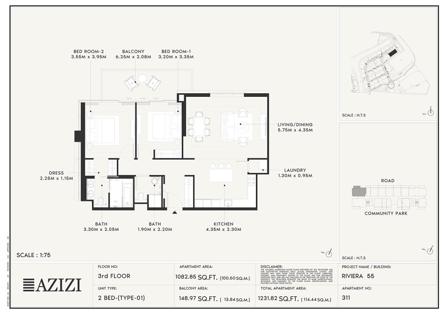 Azizi Riviera 55 от Azizi Developments — современный жилой комплекс, расположенный в районе Meydan City. Проект является частью масштабного прибрежного сообщества Azizi Riviera и предлагает комфортную жизнь в окружении воды, зелёных пространств и городской инфраструктуры.