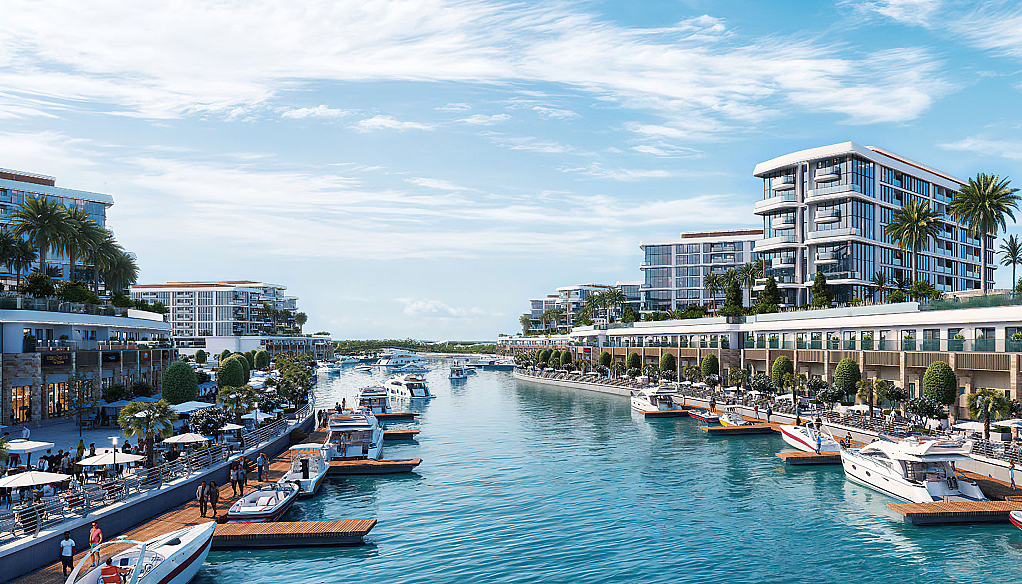 The project features stylish 1-, 2-, and 3-bedroom apartments, including exclusive duplex units. Each residence offers breathtaking views of the yacht club and the shimmering waters of the Arabian Sea.