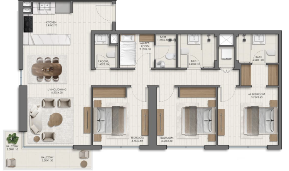 Резиденции отличаются продуманными планировками и качественной отделкой, которые подчеркивают современный стиль проекта. Просторные жилые зоны, панорамные окна и открытые планировки наполняют квартиры естественным светом и создают спокойную, гармоничную атмосферу. Интерьеры выполнены с вниманием к деталям, обеспечивая баланс эстетики, функциональности и удобства в повседневной жизни.