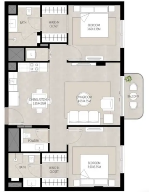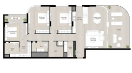 В комплексе представлены апартаменты с 1, 2 и 3 спальнями, а также просторные трёхспальные дуплексы. Площадь резиденций варьируется примерно от 59 до 203 м², что позволяет выбрать жильё, соответствующее различным потребностям — от компактных городских квартир до более просторных семейных вариантов.