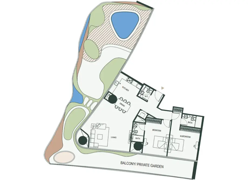 Жителям комплекса будет доступна впечатляющая инфраструктура, включающая более 20 удобств для отдыха, спорта и восстановления. Среди них — корты для падел-тенниса и баскетбола 3×3, частный бассейн с джакузи, инфинити-бассейн и зоны для загара, мини-амфитеатр, площадки для уличного футбола, семейные лаунж-зоны и многофункциональные павильоны. Для поддержания физического и ментального баланса предусмотрены открытые и крытые тренажёрные залы, SPA-зона, сад для медитации и дзен-пространства, а также площадки для аэробики и йоги на свежем воздухе. Атмосферу курортного отдыха дополняет тенистый бар у бассейна.