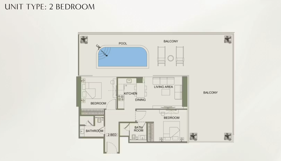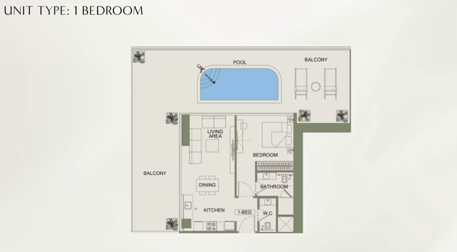 Проект предлагает широкий выбор форматов для жизни и инвестиций: студии, апартаменты с 1 и 2 спальнями, Royal Suites с 1 и 2 спальнями. Площади апартаментов варьируются от 34,56 до 115,85 м², а просторные Royal Suites — от 125,79 до 163,97 м². Продуманные планировки ориентированы на максимальное использование пространства: много естественного света, удобные системы хранения и функциональное зонирование делают каждую резиденцию комфортной для повседневной жизни.