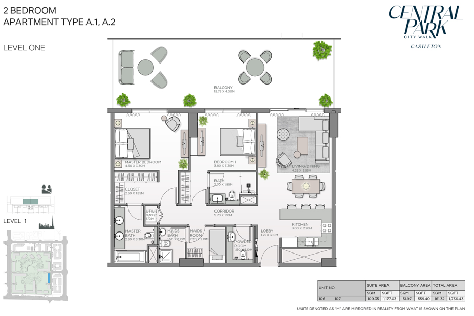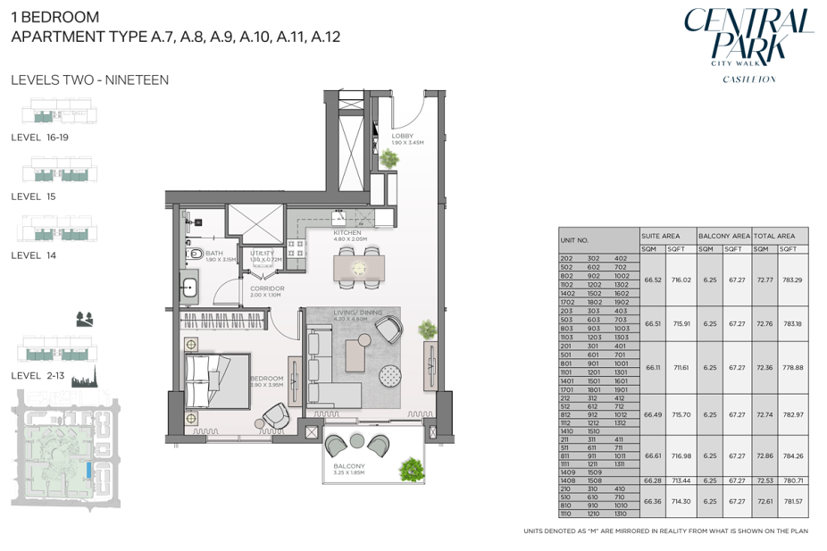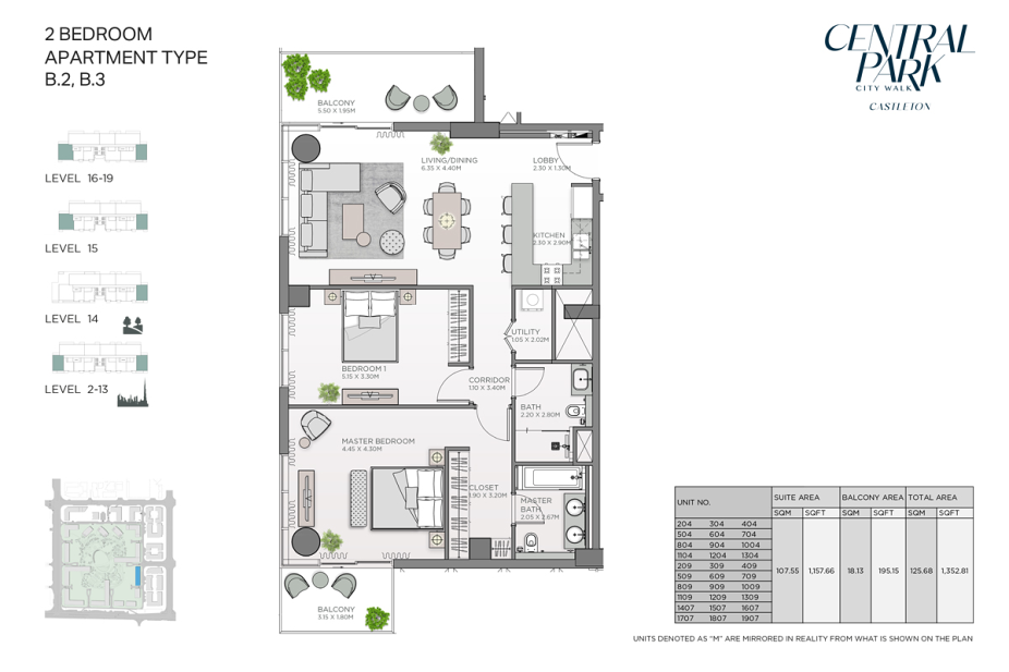 Castleton at City Walk воплощает концепцию современного урбанистического комфорта в окружении зелени, предлагая продуманные пространства для жизни, отдыха и гармонии в сердце Дубая.