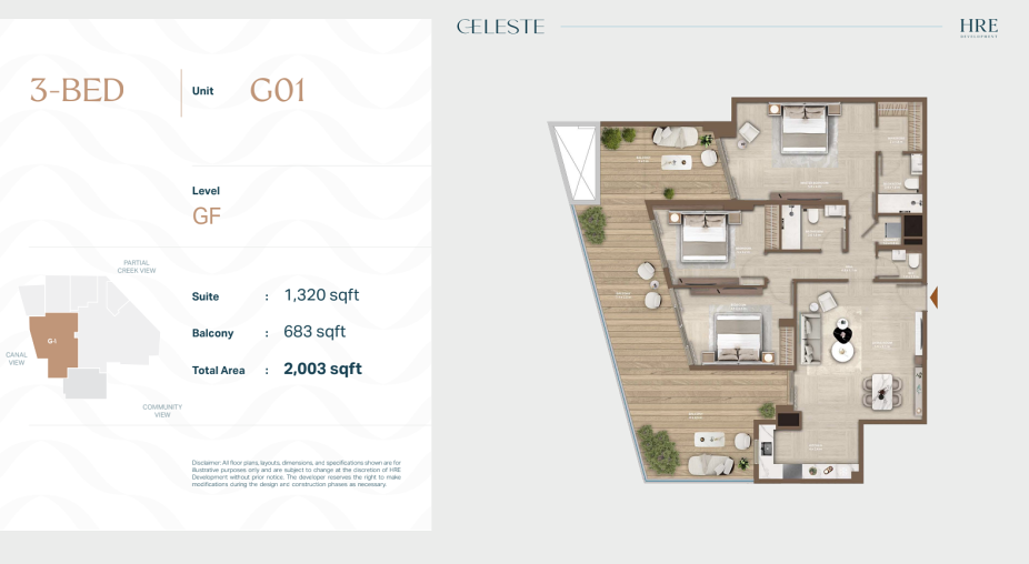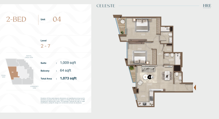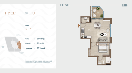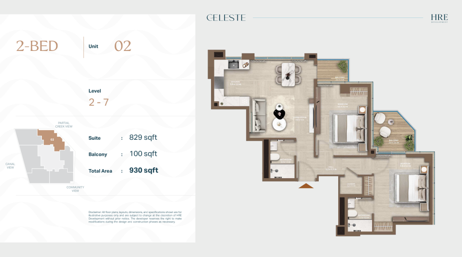 В Celeste представлены апартаменты с 1, 2 и 3 спальнями. Форматы подойдут как для одного человека или пары, так и для семей, которые ищут спокойную жилую среду в городе без плотной застройки и излишнего шума.