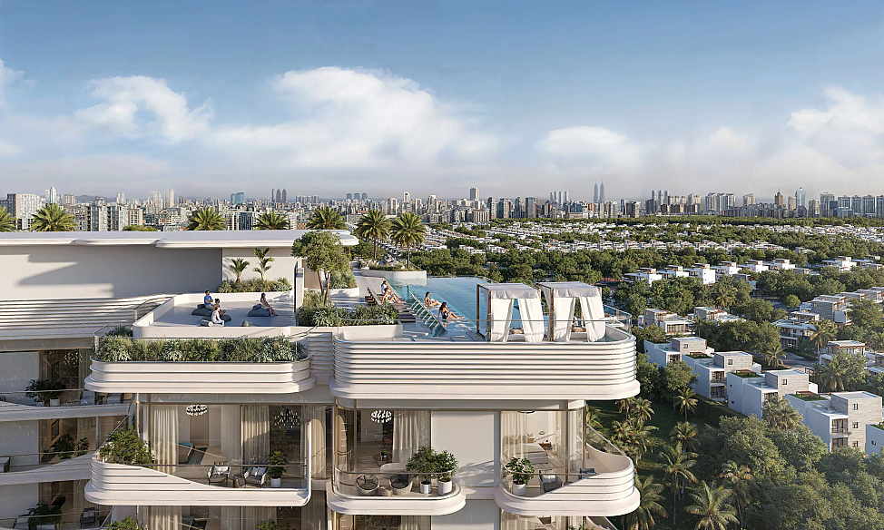 Cybele by Wadan — современный жилой комплекс с выразительной архитектурой, расположенный в районе DLRC на первой линии у парка, прямо напротив вилл и зелёного общественного пространства.