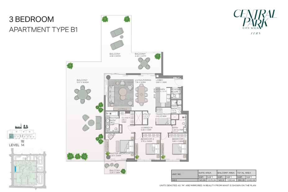 Fern — это стильный жилой комплекс в составе эксклюзивного района Central Park at City Walk. Комплекс предлагает продуманную коллекцию резиденций: от элегантных апартаментов с 1 - 4 спальнями до двух эксклюзивных дуплекс-пентхаусов с 5 спальнями. Площадь жилья варьируется от 72 до 831 м², что позволяет каждому выбрать идеальное пространство под свой стиль жизни.