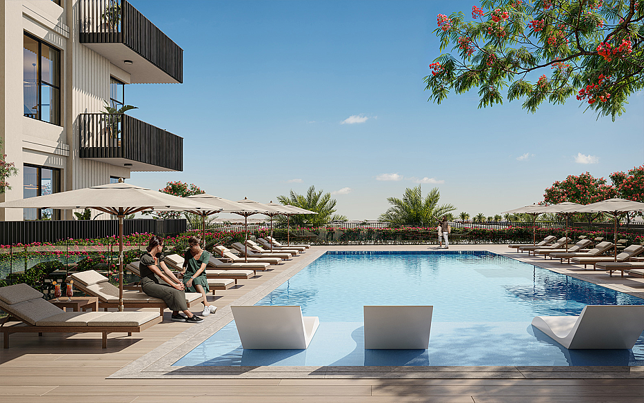 FIA от Nshama — это современный жилой комплекс высотой 19 этажей, расположенный в динамично развивающемся районе Town Square Dubai. Архитектурная концепция проекта выделяется выразительной Г-образной формой и лаконичным современным фасадом, создающим стильный и запоминающийся облик.