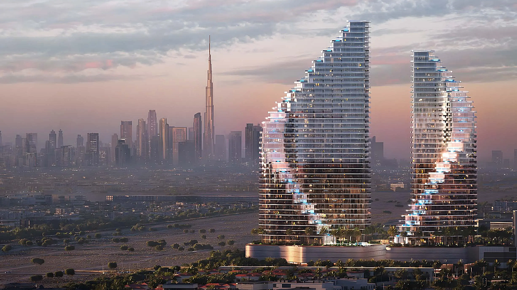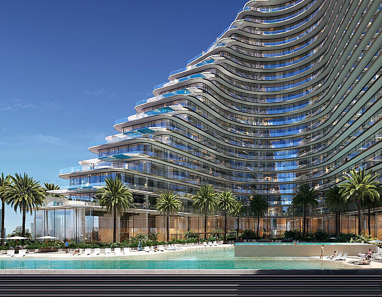Интерьеры резиденций выполнены в тёплой и изысканной палитре с мягкими текстурами, создавая уютный и утончённый жилой комфорт. Проект включает 1378 жилых единиц и 79 коммерческих помещений, с открытыми планировками и видами на подиум с удобствами, морской горизонт и впечатляющий силуэт небоскрёбов, включая Burj Khalifa.