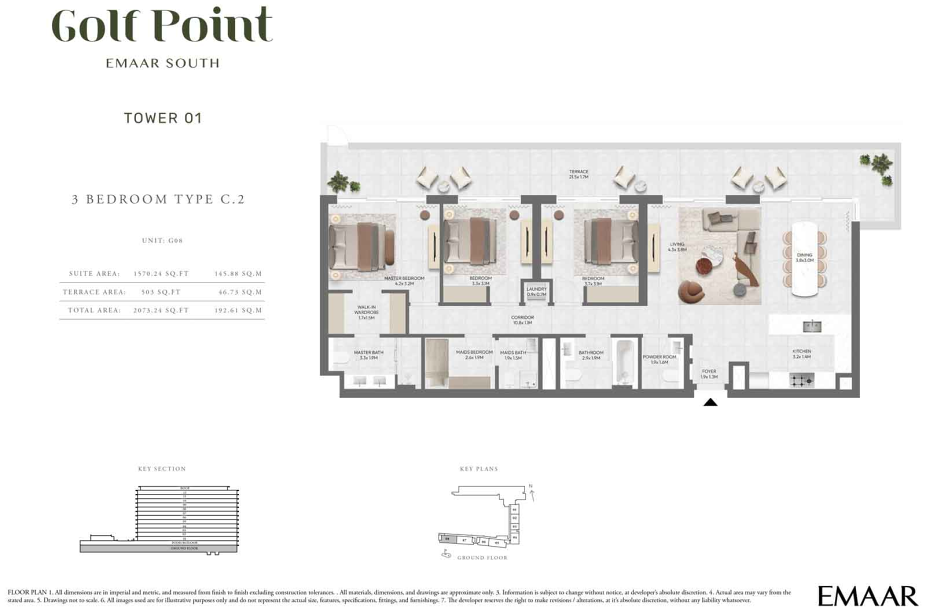 Локация в районе Emaar South делает проект особенно привлекательным для тех, кто ценит баланс между спокойствием загородной жизни и удобной доступностью к ключевым точкам города. В непосредственной близости находятся гольф-клуб и тренировочное поле, что делает комплекс идеальным выбором для любителей гольфа. При этом удобный выезд на основные автомагистрали обеспечивает быстрый доступ к деловым и развлекательным районам Дубая.