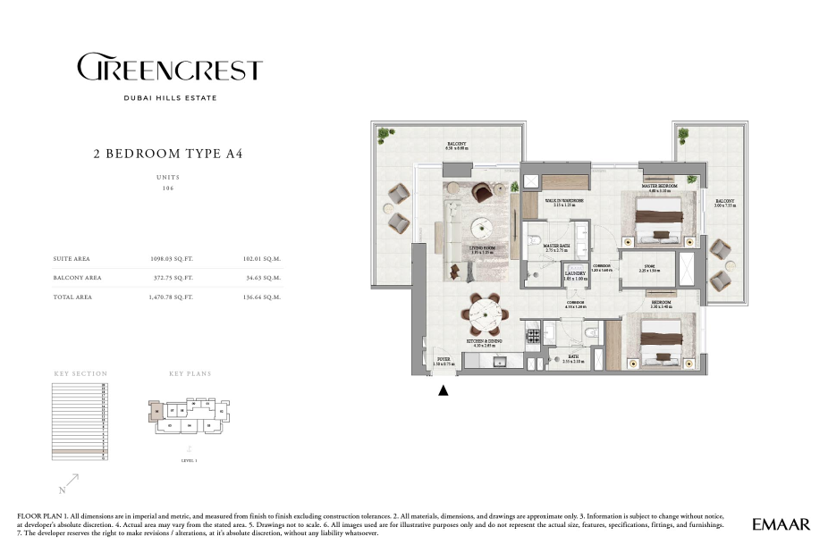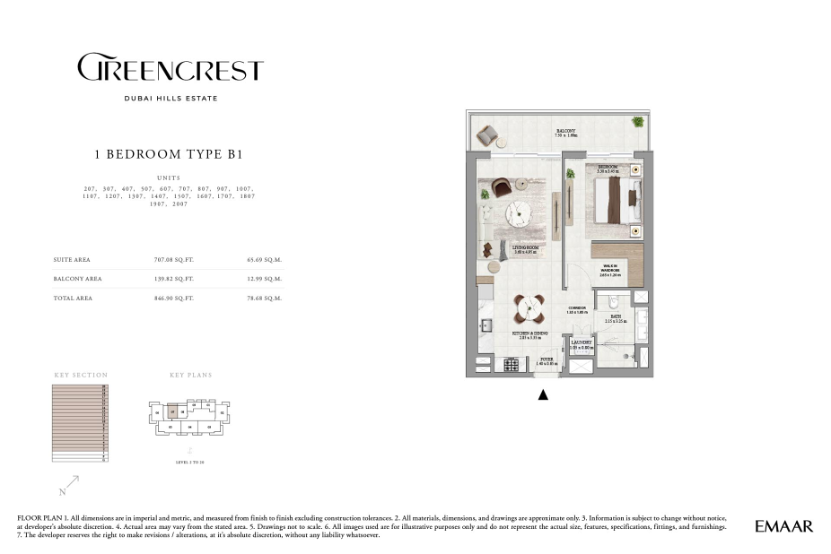 В Greencrest предусмотрено всего 195 резиденций, что формирует камерную и комфортную среду для проживания. Интерьеры выполнены в натуральной цветовой палитре с использованием премиальных материалов и изысканных текстур. Планировки продуманы таким образом, чтобы объединить гостиную, обеденную зону и современную кухню в единое светлое пространство. Просторные спальни становятся личным оазисом спокойствия — наполненные естественным светом, они создают атмосферу уединения и релакса.