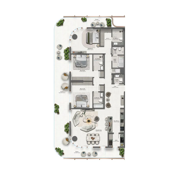 В HADO предусмотрена камерная, малонаселенная атмосфера: проект спроектирован как спокойное убежище от ритма мегаполиса. В комплексе представлены просторные апартаменты и дуплексы с 1–4 спальнями, отличающиеся продуманными планировками, большим количеством естественного света и ощущением открытого пространства.