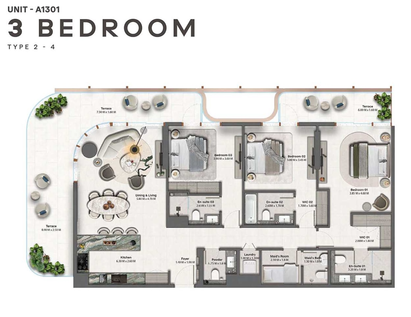Одним из главных преимуществ проекта является его уникальное расположение у моря. Резиденты получат прямой доступ к 6 километрам благоустроенных пляжей с сертификатом Blue Flag, что гарантирует высокий уровень экологичности и качества воды. Территория комплекса окружена 140 000 кв. м зелёных ландшафтов, включая вдохновлённые японской эстетикой внутренние сады, тихие дворы и декоративные водные пространства с зеркальными бассейнами.