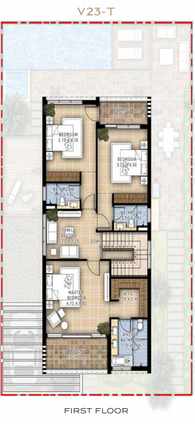 Комплекс включает всего 57 резиденций, что подчёркивает его камерный формат и высокий уровень уединения. В проекте представлены таунхаусы и виллы с 3, 4 и 5 спальнями. Застройка выполнена в конфигурации G+1 и G+2, что обеспечивает оптимальное соотношение пространства, приватности и функциональности.