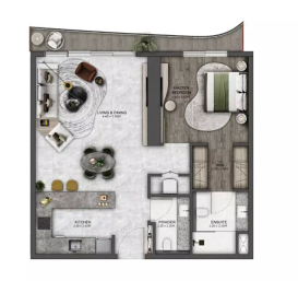 Интерьеры резиденций выполнены в спокойной, элегантной стилистике, где продуманные планировки сочетаются с большим количеством естественного света. Панорамные окна открывают впечатляющие виды на Downtown Dubai, Burj Khalifa и Персидский залив. Отделка включает тщательно подобранные материалы и дизайнерские детали, подчеркивающие уровень премиального комфорта.