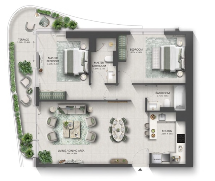 В комплексе представлена разнообразная коллекция недвижимости, включающая апартаменты с 1–4 спальнями, эксклюзивные резиденции Signature, двухуровневые дуплексы и роскошный пентхаус. Просторные планировки, изысканная отделка и продуманные детали интерьера формируют атмосферу современной элегантности. Частные балконы расширяют жилое пространство, создавая идеальные условия для отдыха на свежем воздухе, а система «умный дом» обеспечивают высокий уровень технологичного комфорта.