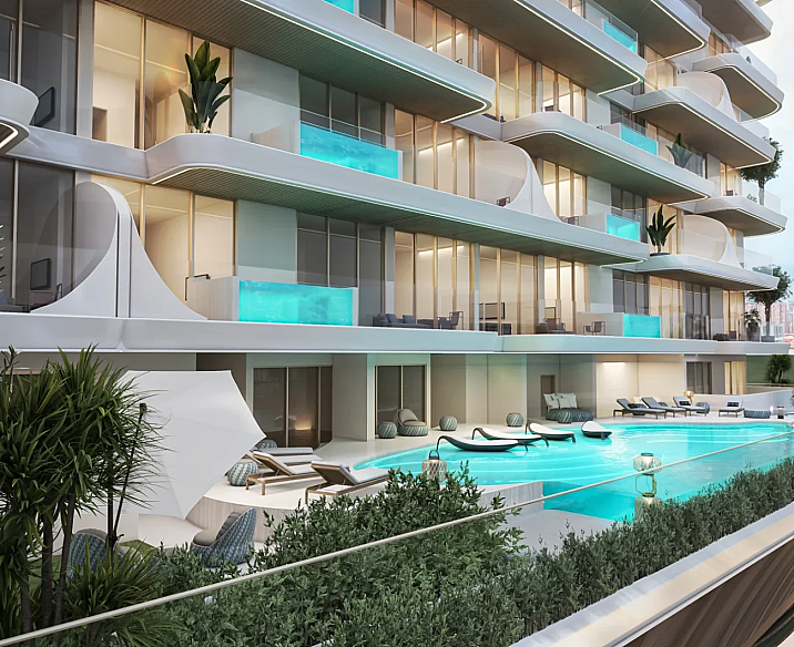 Комплекс расположен в живописном ландшафтном окружении Dubai Islands, где зелёные аллеи и благоустроенные территории создают ощущение курортной идиллии. С террас открываются захватывающие панорамы Аравийского залива и береговой линии города, позволяя наслаждаться природой и морскими горизонтами каждый день.
