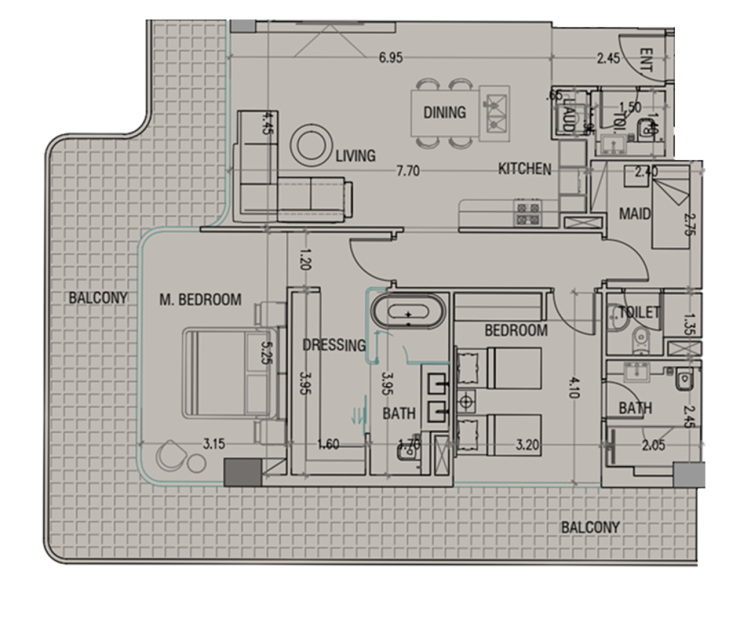 В проекте представлены полностью меблированные апартаменты с 1, 2 и 3 спальнями. Квартиры готовы к заселению: выполнена качественная отделка, установлена встроенная техника, подключены системы «умного дома». Панорамные окна от пола до потолка обеспечивают хорошее естественное освещение и открывают виды на море и городской пейзаж.