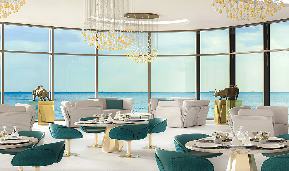 Интерьеры выполнены с использованием мебели и элементов декора от известного итальянского бренда Tonino Lamborghini Casa, что придаёт пространствам особую элегантность и подчёркивает премиальный статус проекта. Каждая резиденция спроектирована с акцентом на комфорт, функциональность и современную эстетику, создавая атмосферу роскошной прибрежной жизни.