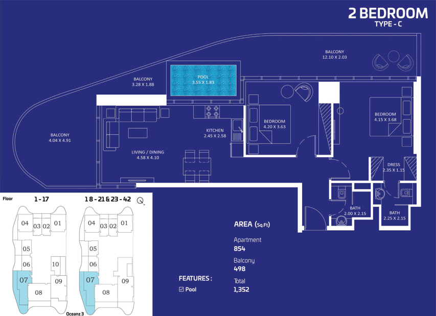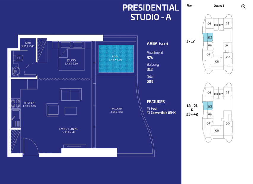 Расположение в Dubai Maritime City обеспечивает удобную транспортную доступность и высокий инвестиционный потенциал. Комплекс находится рядом с основными автомагистралями города и будущими станциями метро, что позволяет быстро добраться до ключевых районов Дубая и делает повседневные поездки максимально комфортными.