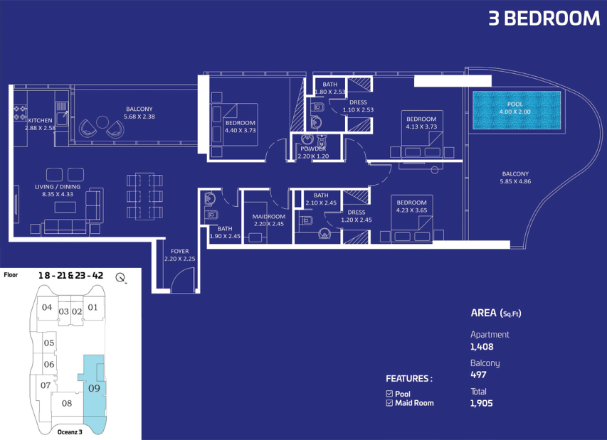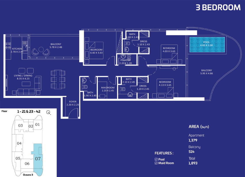 Oceanz Tower 3 by Danube Properties — новый премиальный жилой проект на побережье, расположенный в районе Dubai Maritime City. Башня продолжает концепцию престижного прибрежного комплекса Oceanz и предлагает современное пространство для жизни, вдохновлённое морской атмосферой и динамикой мегаполиса.