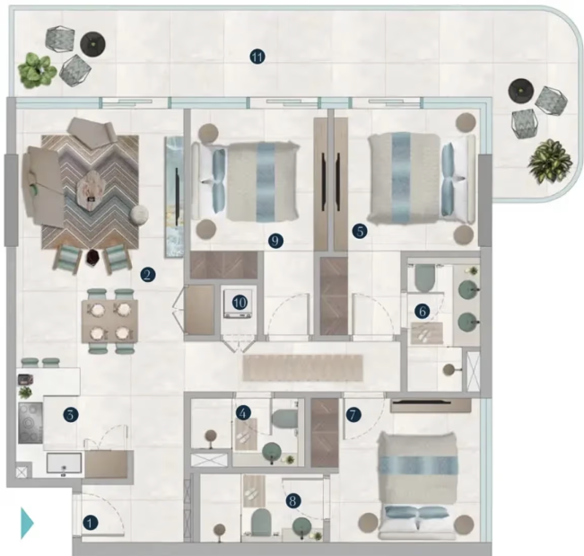 OCTA ISLE — знаковый жилой проект OCTA Properties с авторскими интерьерами от Missoni, расположенный на острове A в составе масштабного прибрежного кластера Dubai Islands. Комплекс объединяет всего 112 эксклюзивных резиденций с 2–5 спальнями, предлагая разнообразные планировочные решения с просторными террасами, гардеробными комнатами и приватными зонами отдыха. Площадь апартаментов варьируется от 93 м² (формат 2 BR Plus) до 330 м² в пятиспальных резиденциях.