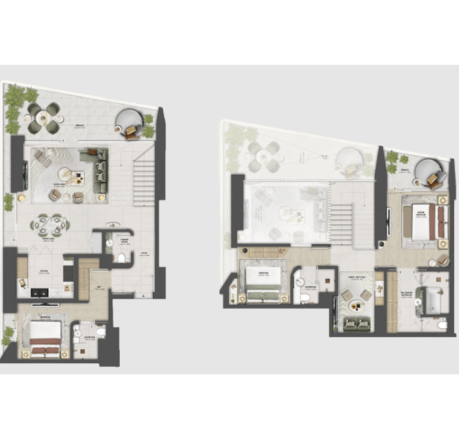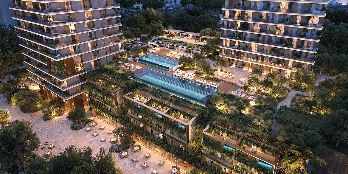 В комплексе представлена разнообразная коллекция недвижимости: апартаменты с 1–3 спальнями, шале с 2–3 спальнями, эксклюзивные пентхаусы и резиденции Signature Collection с 3–4 спальнями. Площадь жилья варьируется примерно от 67 до 547 кв. м, предлагая как комфортные городские резиденции, так и просторные премиальные пространства для жизни у воды.