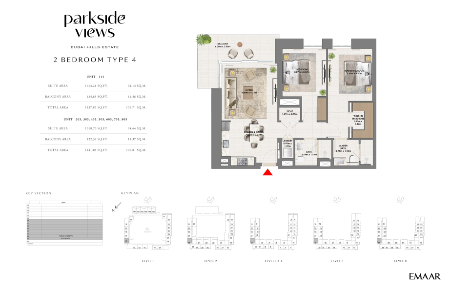 Архитектурная концепция комплекса воплощает современный стиль с чистыми линиями и вневременной эстетикой. Коллекция из 389 резиденций включает в себя разнообразные форматы жилья: от элегантных квартир с одной, двумя или тремя спальнями до просторных дуплексов и эксклюзивных таунхаусов. Интерьеры, выполненные в светлых тонах с использованием натуральных материалов, создают атмосферу тепла и уюта, которая гармонично дополняется обилием естественного света благодаря панорамному остеклению. Продуманные планировки с открытыми зонами кухни, столовой и гостиной идеально подходят для семейного общения и приема гостей, а просторные стеклянные балконы и террасы позволяют наслаждаться захватывающими видами на парк, величественную Бурдж-Халифа и легендарную панораму Дубая.