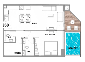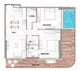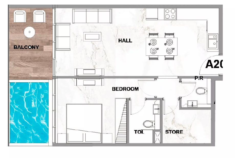 В комплексе представлены студии, апартаменты с 1 и 2 спальнями, каждая из которых имеет приватный бассейн. Такое решение гармонично сочетает уединение, комфорт и ощущение эксклюзивности, делая повседневную жизнь по-настоящему особенной.