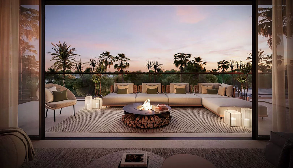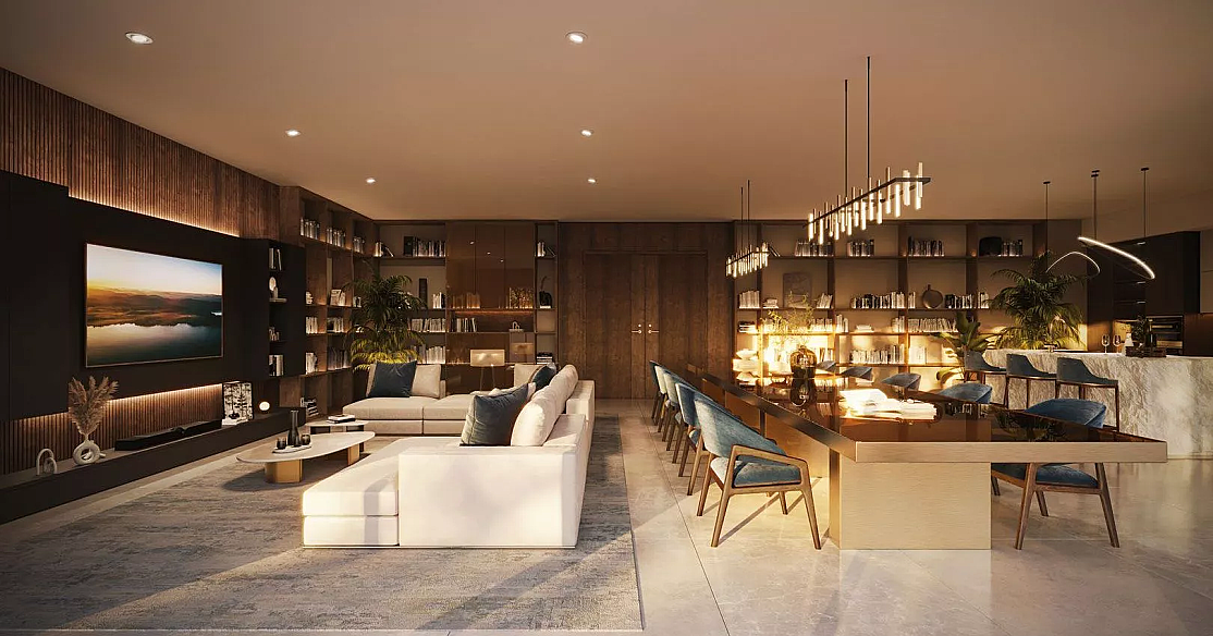 The Sama Yas collection features 274 sophisticated residences: 1–3 bedroom apartments, including options with private gardens, as well as 2–3 bedroom duplexes. Residence sizes start from 81 sq. m, and interiors follow the “old money” aesthetic with a focus on natural materials and understated luxury. A contrasting palette — from creamy whites to deep chocolate tones — is paired with textures of fine wood, marble with expressive veining, glass, metal, and natural stone. Together, these elements create an atmosphere of modern aristocratic elegance.