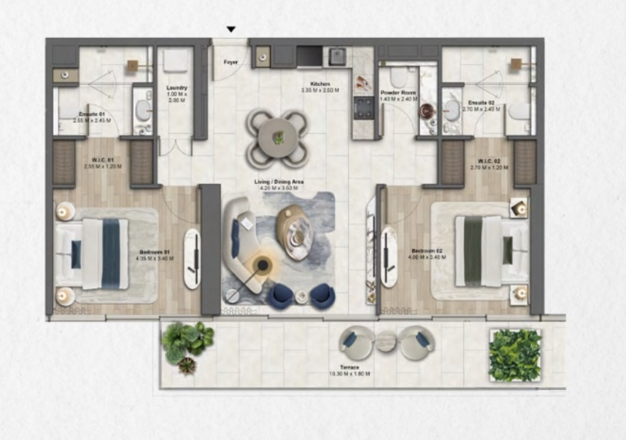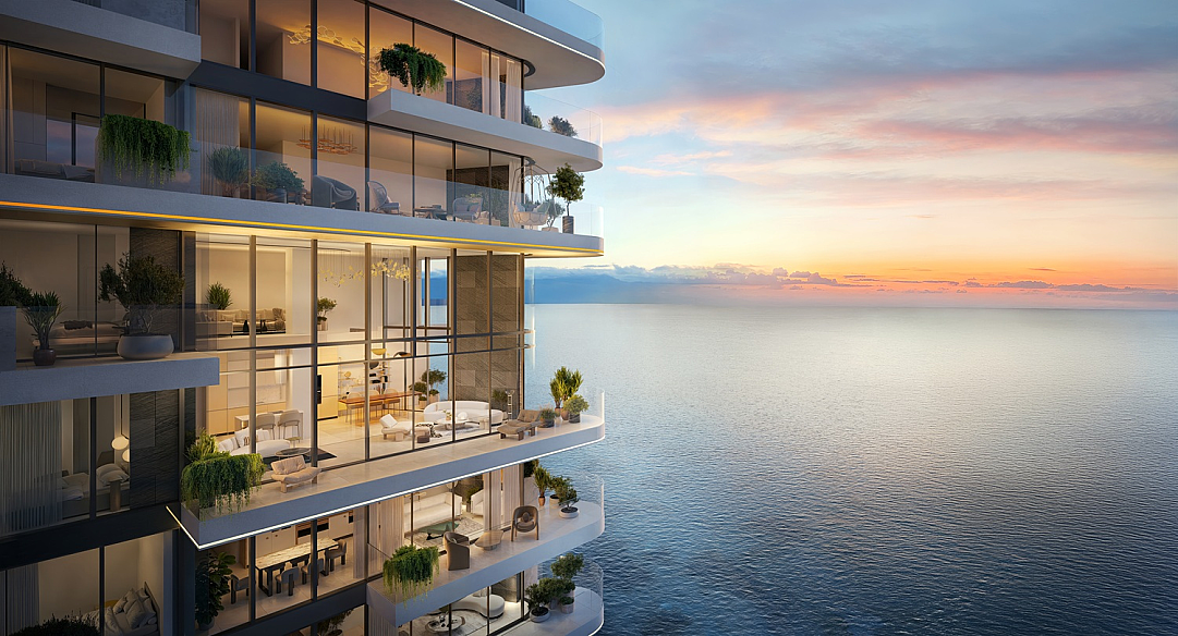 Резиденции спроектированы с высотой потолков до 3,2 метра, просторными открытыми планировками и панорамными террасами, что создаёт атмосферу современной прибрежной резиденции премиального уровня.