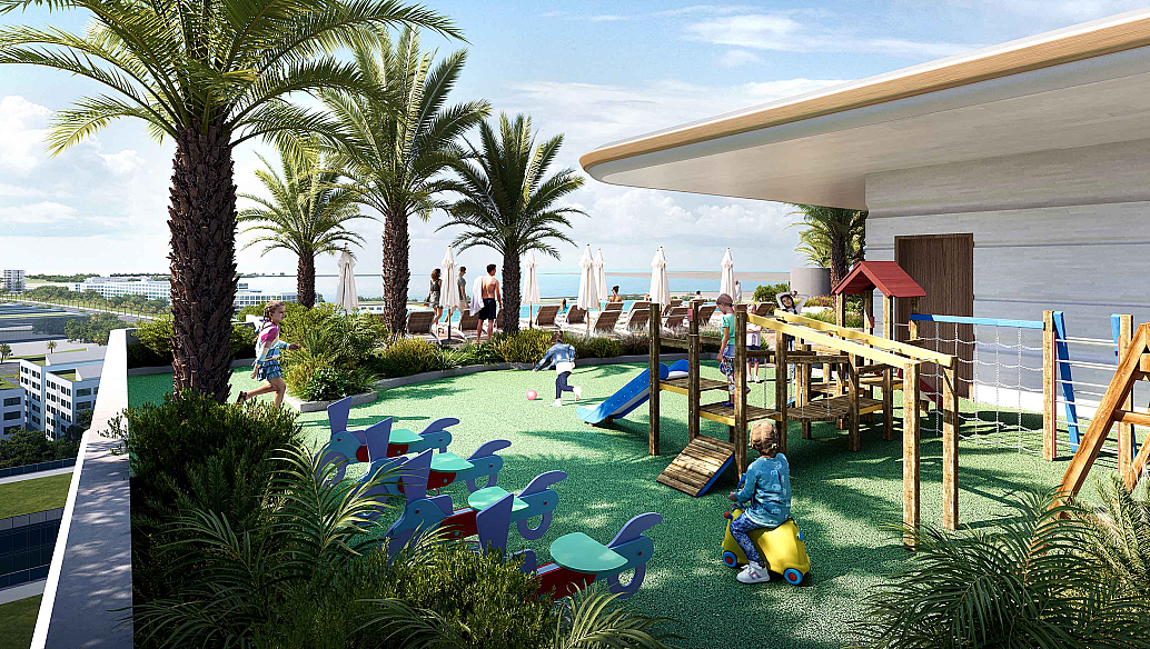 Жителям комплекса доступен широкий спектр удобств мирового уровня. Здесь есть инфинити-бассейн с видом на море, полностью оснащённый фитнес-центр, SPA-зона и пространства для отдыха. Для семей с детьми предусмотрены зелёные газоны и детские игровые площадки, а также общие зоны для общения с соседями.