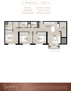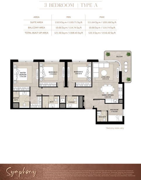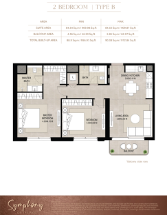 В комплексе представлены апартаменты с 1, 2 и 3 спальнями площадью от 60,21 до 125,88 м². Планировки разработаны с акцентом на функциональность и ощущение простора: светлые жилые зоны, открытые пространства и большие окна создают атмосферу уюта и свободы. Интерьеры продуманы до мелочей — от глянцевых керамогранитных полов до встроенных шкафов и полностью оборудованных кухонь, что обеспечивает идеальный баланс между современным стилем и практичностью.