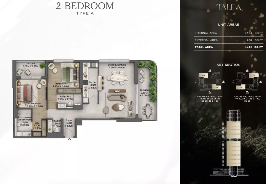 Talea by BEYOND — современный жилой комплекс, вдохновлённый природой и расположенный в Forest District района Dubai Maritime City. Проект создаёт уникальное пространство для жизни среди зелёных парков и прибрежных пейзажей. В Talea особое внимание уделено качеству архитектуры, продуманному дизайну и гармонии с окружающей природной средой.