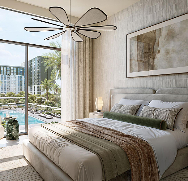 В комплексе представлена разнообразная коллекция недвижимости: апартаменты с 1, 2 и 3 спальнями, а также ограниченное количество таунхаусов. Всего проект включает 824 резиденции, грамотно интегрированные в масштабное мастер-сообщество. Планировки разработаны с акцентом на функциональность и удобство: открытые жилые пространства, большие окна и естественное освещение создают ощущение простора и лёгкости. Интерьеры выполнены в современном стиле и ориентированы на гармоничное сочетание приватных зон и пространств для общения.