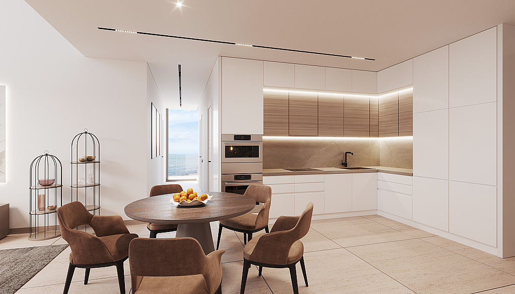 Площадь резиденций варьируется от 47 до 215 м². Все квартиры оснащены просторными балконами с видами на море и остров, а в некоторых предусмотрены комнаты для персонала.