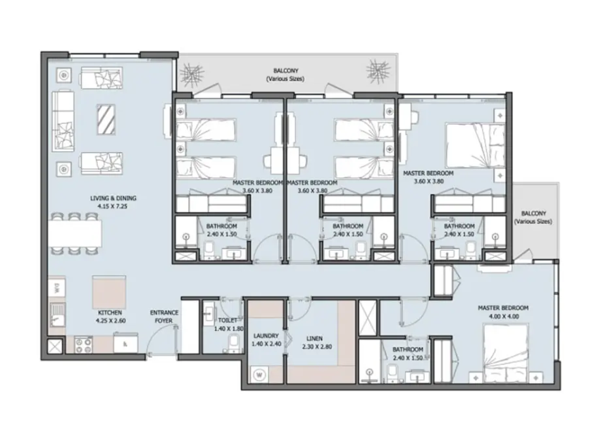 Проект включает 15-этажную жилую башню, а также коллекцию стильных таунхаусов, формируя гармоничное пространство для жизни в составе масштабного семейного сообщества Verdana. В комплексе представлено 280 таунхаусов с 2, 3 и 4 спальнями площадью от 164 до 241 м², а также 363 апартамента — от студий до резиденций с 4 спальнями площадью от 34 до 255 м². Такое разнообразие форматов позволяет подобрать идеальное жильё как для индивидуальных резидентов, так и для семей.