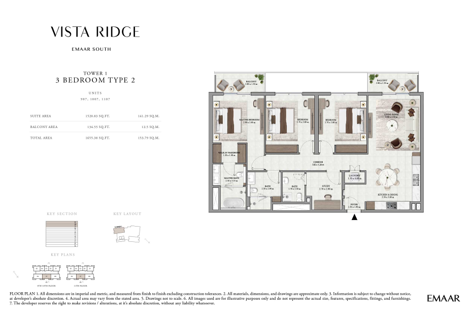 Проект расположен в престижном Golf District комьюнити Emaar South, откуда открываются живописные панорамные виды на холмы, зелёные ландшафты и ухоженные гольф-поля. Архитектура Vista Ridge отражает фирменный стиль Emaar — динамичный, функциональный и элегантный, гармонично вписанный в окружающую природу. Закрытая охраняемая территория формирует атмосферу приватности и спокойствия, дополняемую продуманной инфраструктурой для отдыха, здоровья и повседневного комфорта.