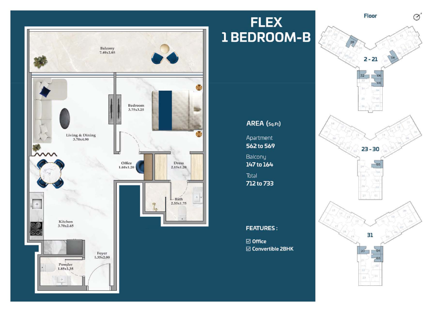 Timez by Danube is a landmark premium development in Dubai Silicon Oasis, combining futuristic architecture, flexible layouts, and convertible apartment formats — studios can be transformed into 1-bedroom units, and 1-bedrooms into 2-bedroom units.