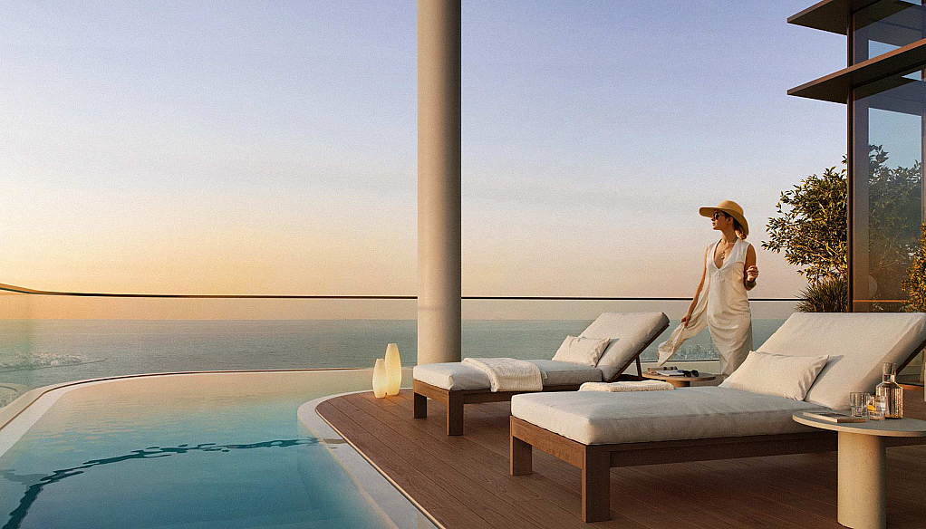 The interiors impress with sophistication and elegance, featuring custom-designed furniture, marble flooring, high ceilings and panoramic windows that create a sense of openness and light. Bathrooms are fitted with soaking tubs overlooking the city while kitchens come equipped with premium appliances, offering both functionality and style. Residents also have the opportunity to personalize their interiors tailoring the space to their individual taste.