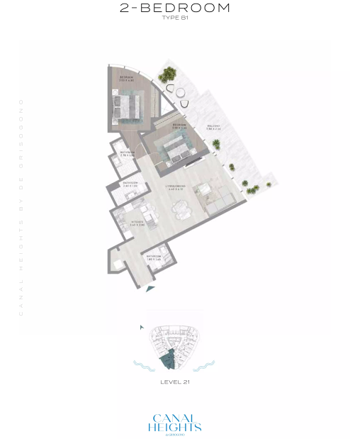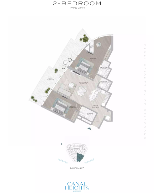 Canal Heights is a luxurious residential project located in the prestigious Business Bay district — a perfect choice for those who dream about luxurious lifestyle on the banks of the Dubai Water Canal. Developed by DAMAC and branded by the Swiss luxury jeweller de GRISOGONO, the project embodies sophistication and timeless elegance.