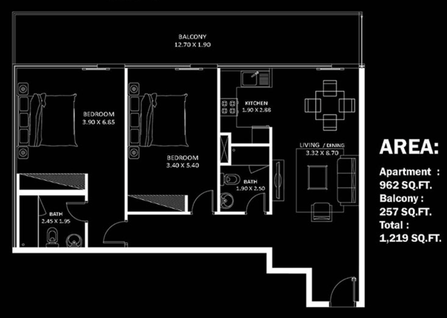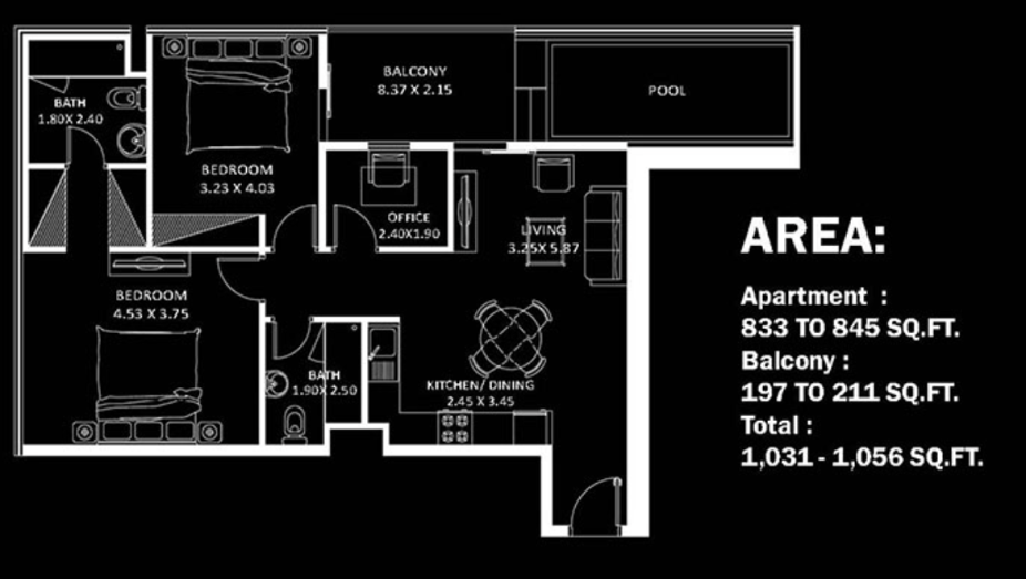 The unique glass façade design is complemented by a rich selection of over 30 amenities, including an infinity pool, gym, aqua fitness, mini-golf, open-air cinema, BBQ zones, poolside cabanas, kids' pool, play area, tennis and cricket courts.