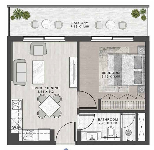 The development offers a range of cozy 1- and 2-bedroom apartments with private balconies, fitted with modern kitchen appliances and high-quality light-toned finishes. Amenities include a pool with jacuzzi, a fitness gym, sauna, children’s play area, BBQ space, and an open-air cinema.