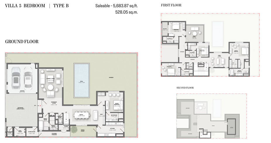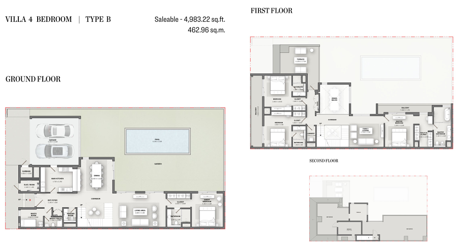 The complex will consist of several phases, including a collection of 300 different types of villas. The first phase of the project features two stages and 60 villas. The residences offer various layout options, with sizes ranging from 463 to 534 square meters.