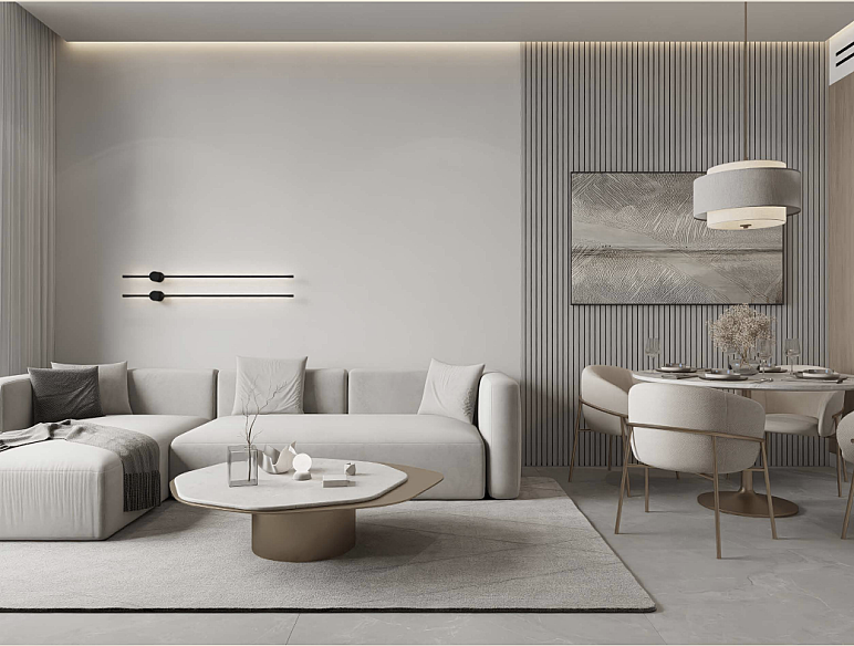 Interiors are designed with a focus on functionality and visual calm. Neutral color palettes, clean lines, and abundant natural light create comfortable, uncluttered living spaces.