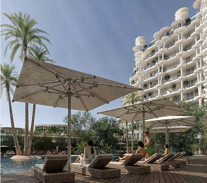 The architecture combines clean modern lines with soft, organic forms. Large windows, spacious balconies, rooftop terraces, and an indoor–outdoor living concept provide good natural light and a sense of openness. Parking is located underground, keeping the podium level car-free, safer, and quieter.
