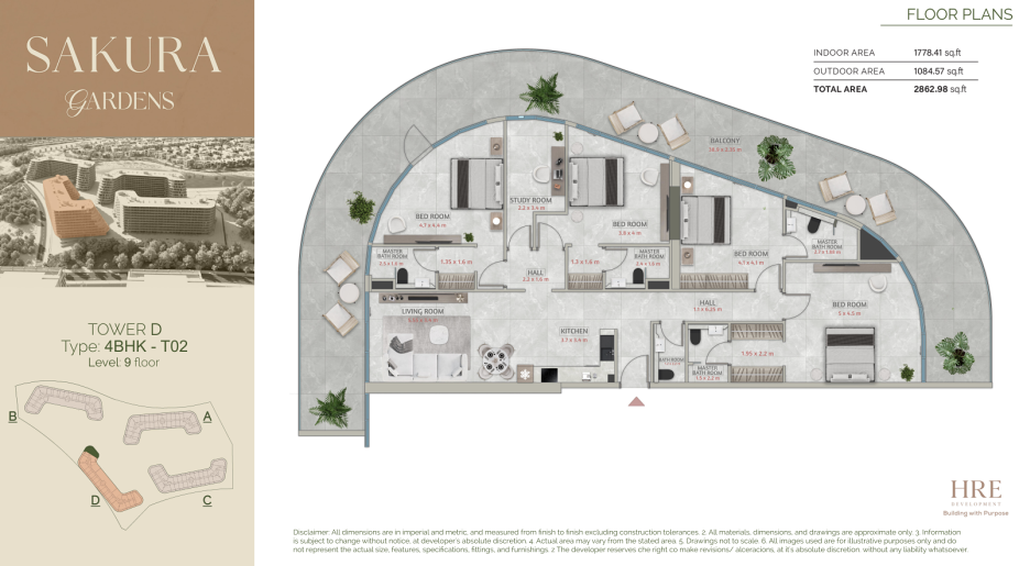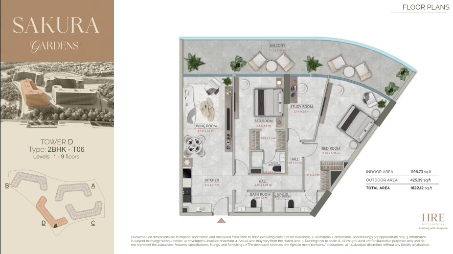 Sakura Gardens is a mid-rise residential community (G+9) designed with a focus on a calm and open living environment. Unlike dense high-rise developments, the project offers more space, green views, and well-thought-out layouts focused on everyday comfort. The buildings are arranged around a central park of approximately 30,000 m², creating a quiet, almost resort-like atmosphere within the community.