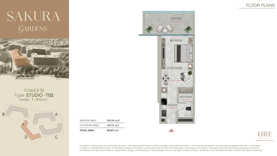 Sakura Gardens Falcon City features a design that blends minimalist Japanese aesthetics with natural elements. The project offers a range of residential formats suitable for different needs and family sizes: