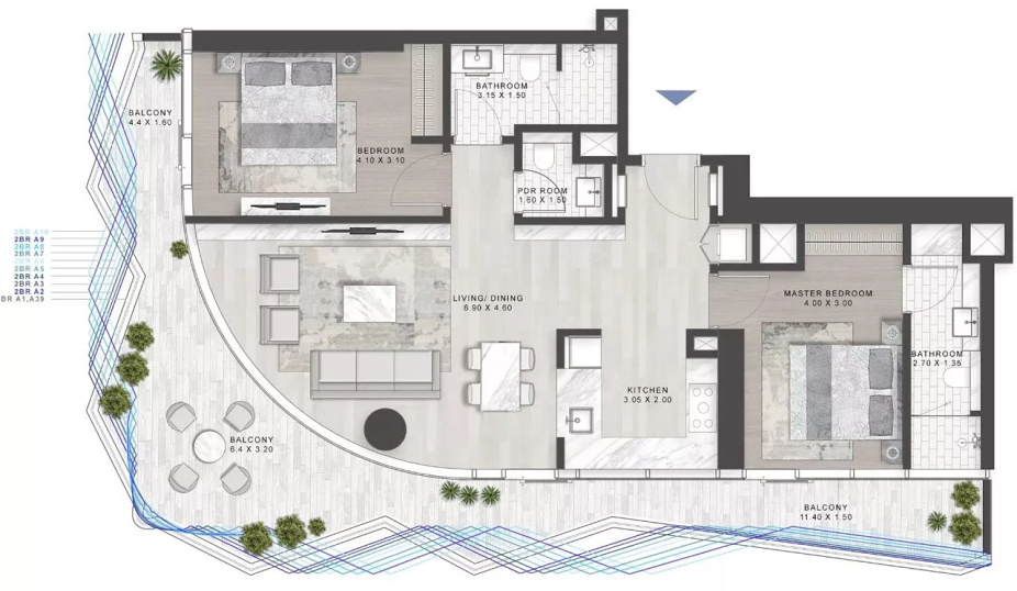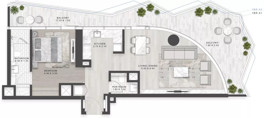 Each residence offers spacious balconies with stunning panoramic views of Burj Khalifa, Downtown, and the Arabian Sea.
