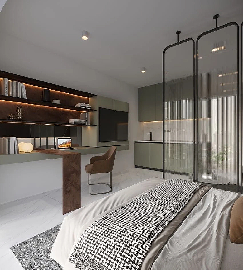 We present stylish studio with a total area of 41 m², located in Equiti Gate, a premium residential project by Refine Development Management and developer BNH Real Estate Developer. The complex is situated in the fast-developing Jebel Ali Freezone Extension area of Dubai and combines modern architecture, a high level of comfort, and well-designed infrastructure.